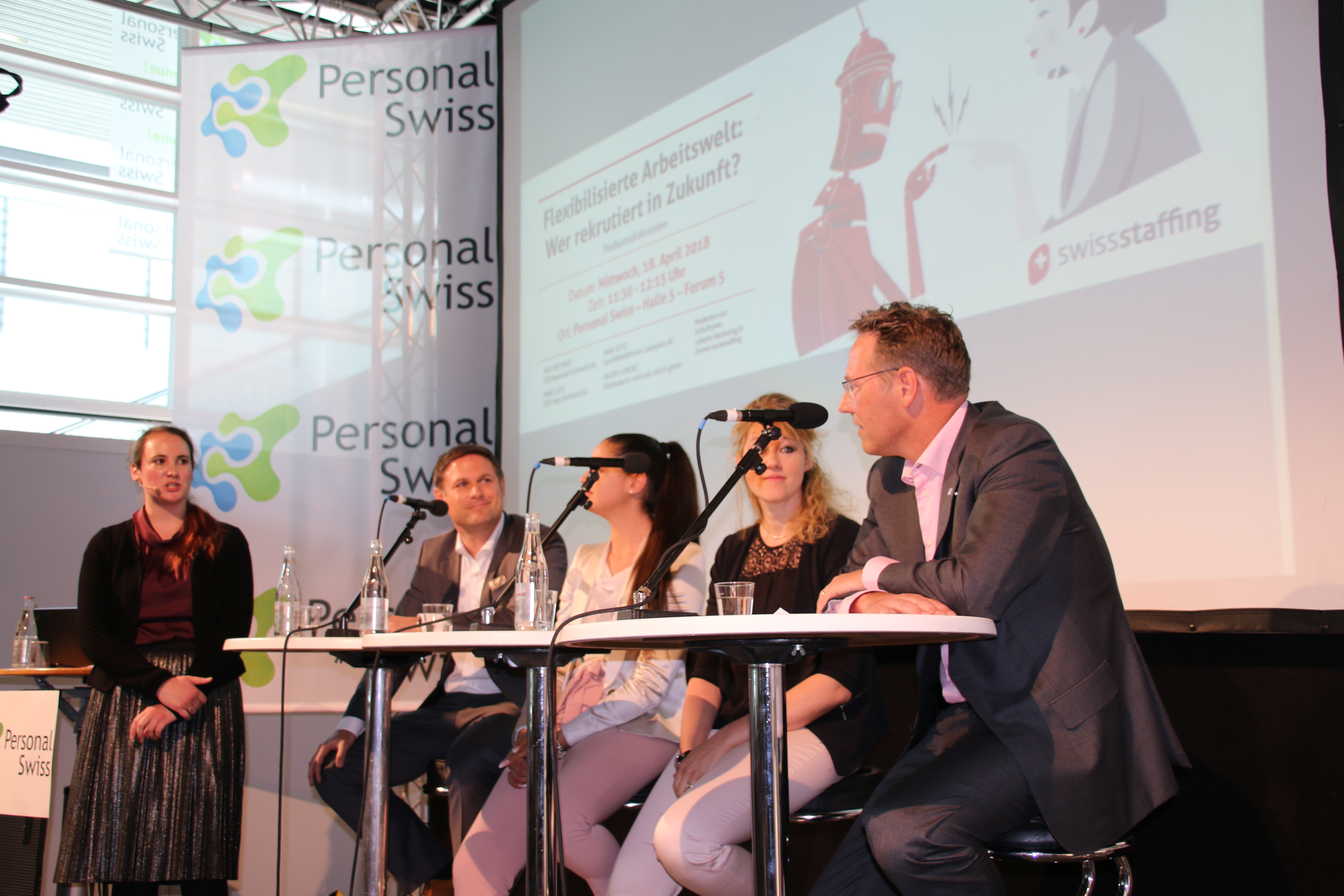 Digitalisierung, Roboterisierung, Künstliche Intelligenz, Gig-Economy oder Big Data – Recruiting, Personaldienstleistung und HR stehen vor vielen neuen Herausforderungen. Die Arbeitswelt flexibilisiert sich zunehmend. Im Gespräch mit den vier Recruiting-Experten Marc Lutz (CEO Hays Schweiz), Valery Lorenz (Mitinhaberin mein job), Jana Jutzi (Geschäftsführerin Careerplus) und Taco de Vries (CEO Randstad Schweiz) wollte Julia Bryner von swissstaffing wissen, wohin die Reise im Recruiting geht. Dazu ein paar Statements.