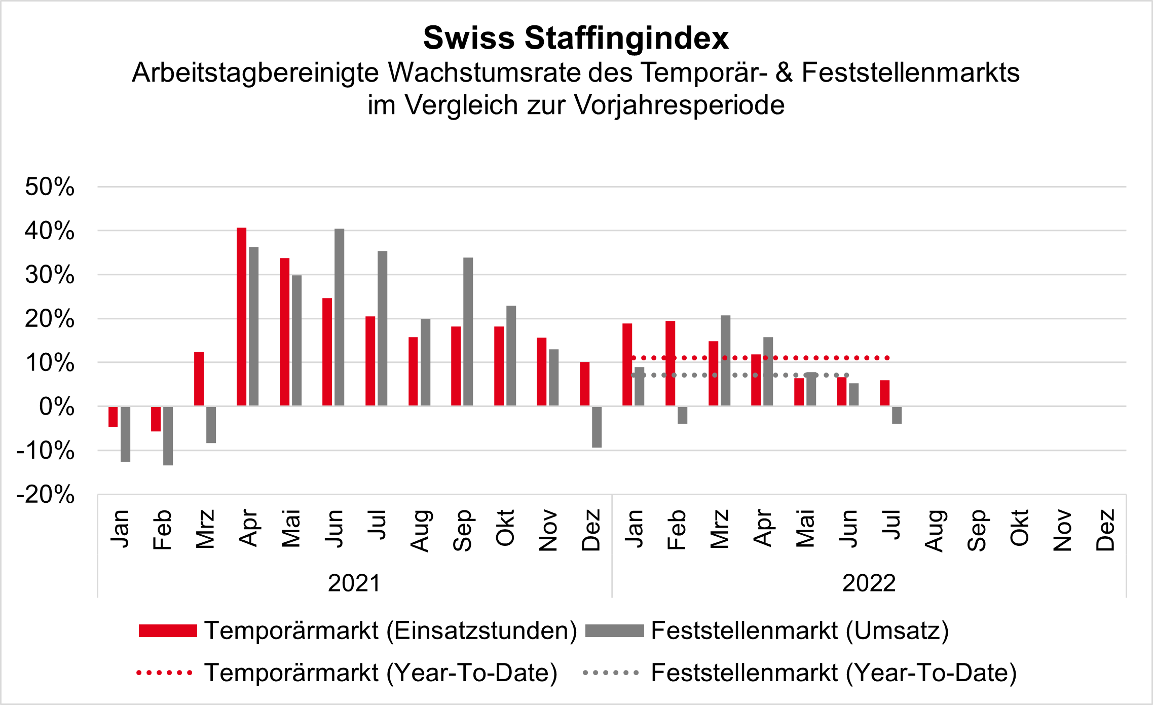 Zwei scheinbar paradoxe Entwicklungen sind dafür verantwortlich: Erstens ist der Arbeitsmarkt in der Schweiz ausgetrocknet. Wer eine Feststelle sucht, hat diese in der Regel bereits gefunden. Um das verbleibende Inländerpotenzial zu heben, ist die Flexibilität der Temporärarbeit ein wichtiger Schlüssel. Gleichzeitig dürften sich im beobachteten Trend Konjunktursorgen verstecken. Der Winter rückt näher – mit zu befürchtenden Engpässen bei Gas und Strom. Dies ist ein weiterer Grund, warum die Einsatzbetriebe vermehrt auf Temporärarbeit setzen könnten.