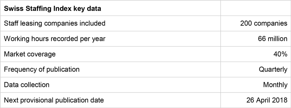 These favorable figures also conceal risks: increasing vacancy rates for rental properties and falling immigration could cause overheating in the building sector, a key industry for staff leasing companies. In addition, efforts to limit temporary work are threatening to start destroying key entry-level jobs. However, positive development in the global economy and Switzerland's pleasing growth provide the staff leasing sector with hope for a good 2018. In the assessment of Marius Osterfeld, economist at swissstaffing: "If the historical link between GDP growth and the Swiss Staffingindex is borne out, the sector could grow by up to a further 5.8% in 2018."