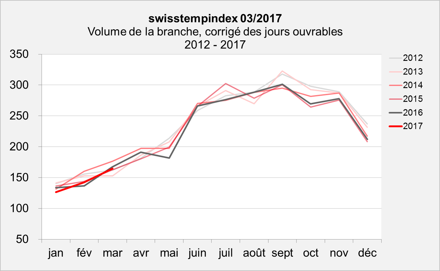 swisstemprend a légèrement ralenti au mois de mars par rapport à la même période en 2016. Le baromètre du secteur indique une activité commerciale réduite de 1,7 pour cent après correction des jours ouvrés. Étant donnée la date tardive de Pâques, le mois de mars comptait 23 jours ouvrés, ce qui résulte en un taux de croissance non ajusté de 2,6 pour cent depuis le début de l'année. Notre branche a elle aussi enregistré une légère hausse de 0,4 pour cent au cours des douze derniers mois.