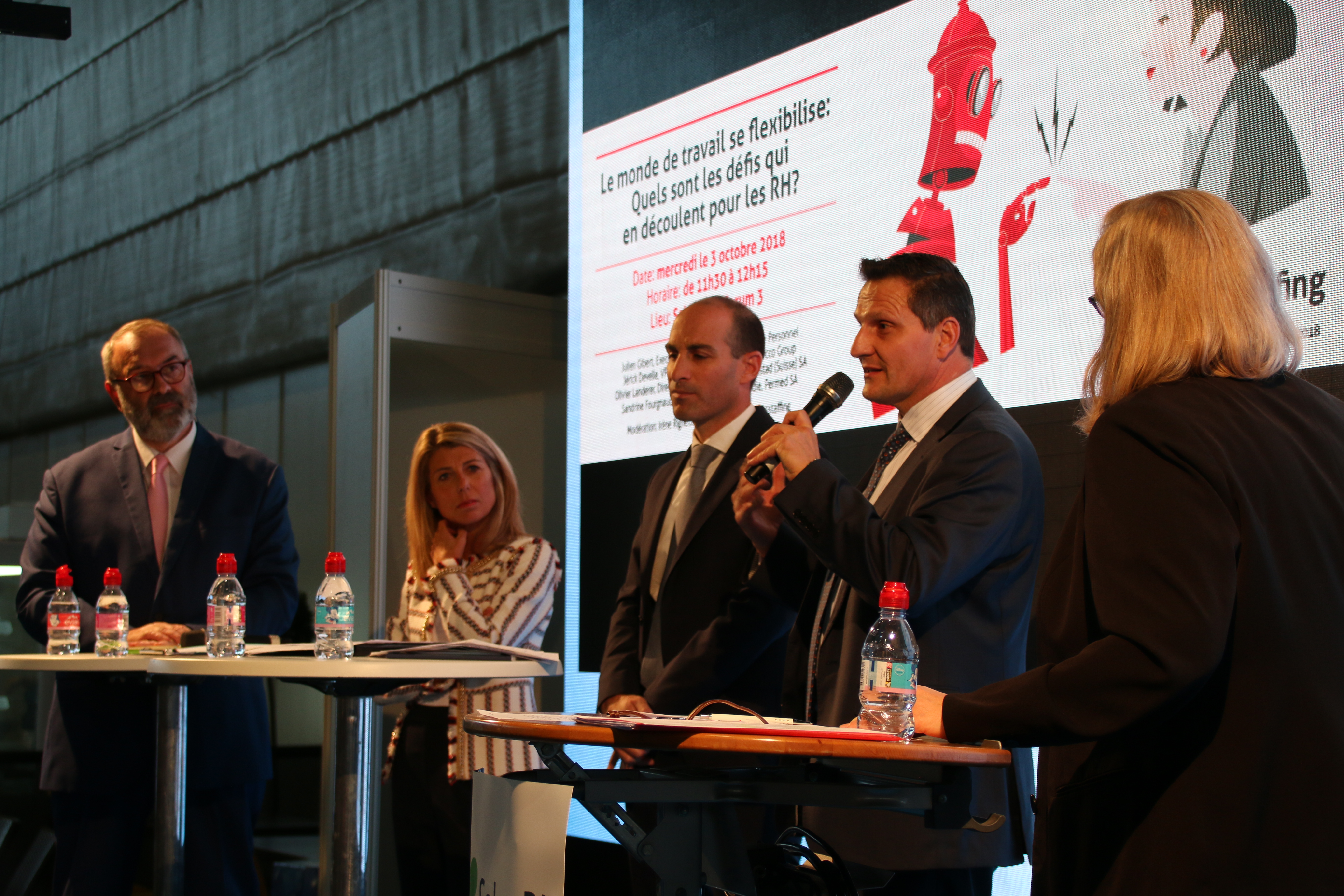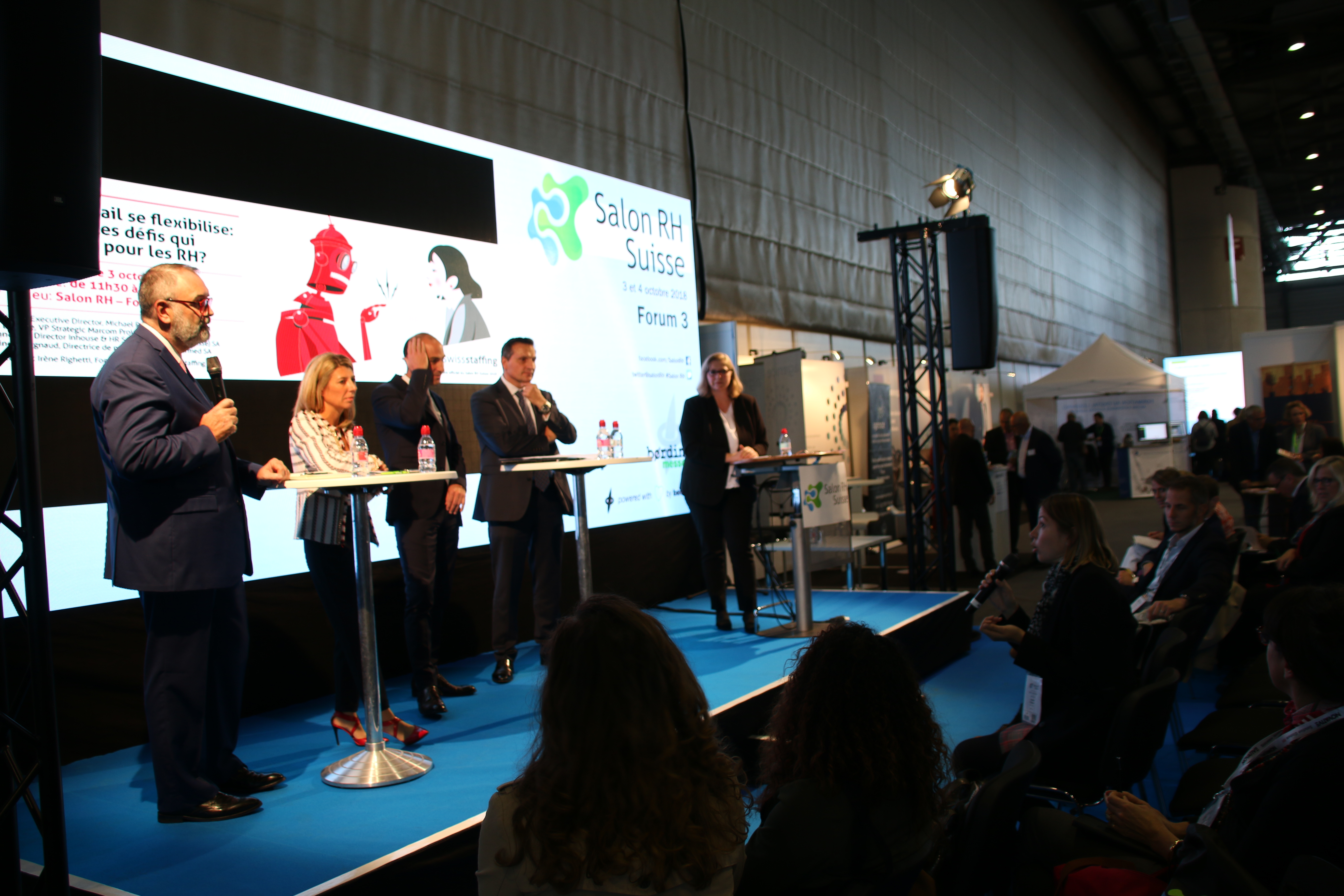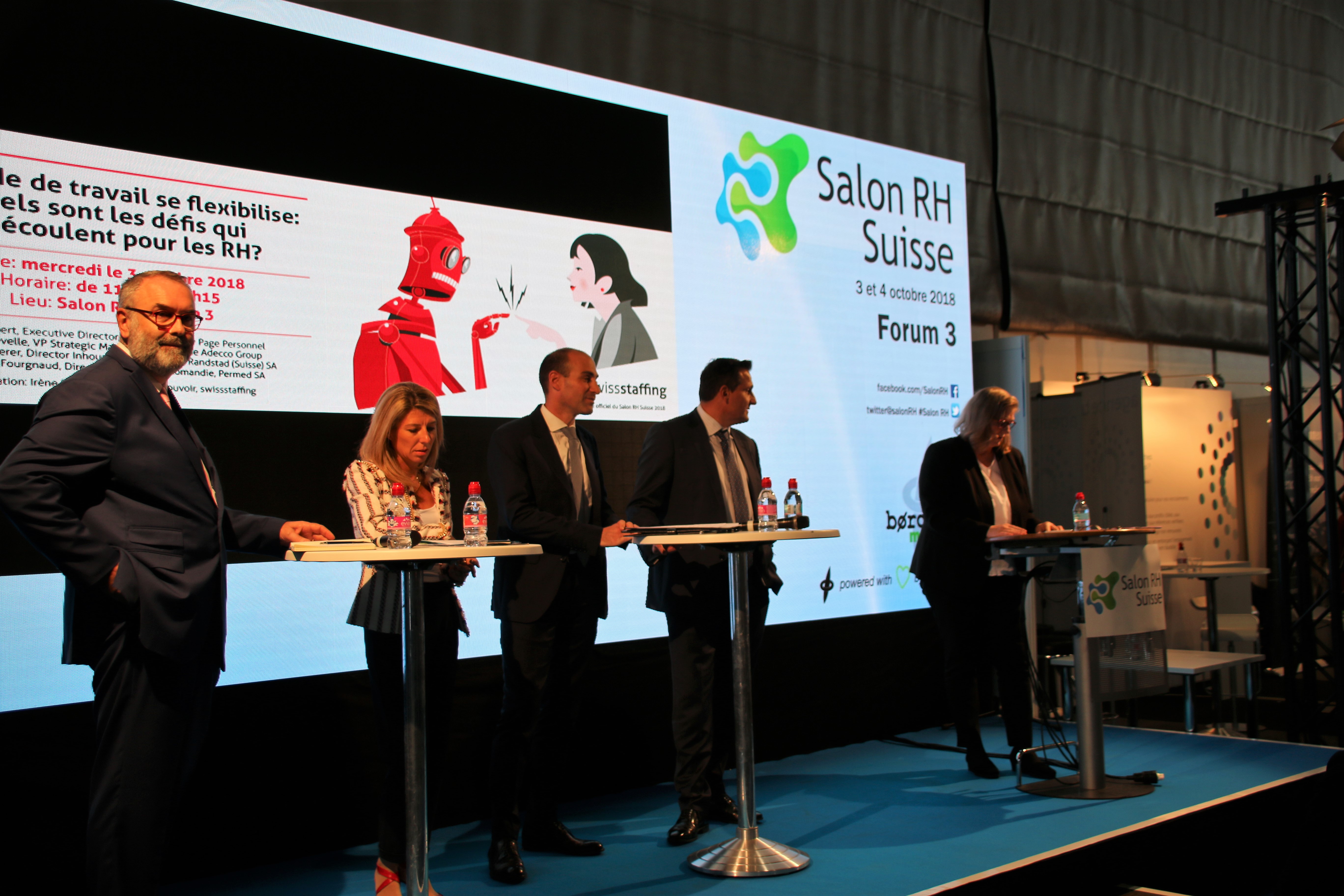 swissstaffing s'est entretenu au Salon RH avec les experts de la branche de recrutement suivants : Olivier Landerer, Inhouse & HR Services Director, Randstad (Suisse) SA, Jérick Develle, VP Strategic Marcom Projects, the Adecco Group, Julien Gibert, Executive Director Michael Page & Page Personnel Geneva et Sandrine Fourgnaud, Directrice d'agence Romandie, Permed SA.