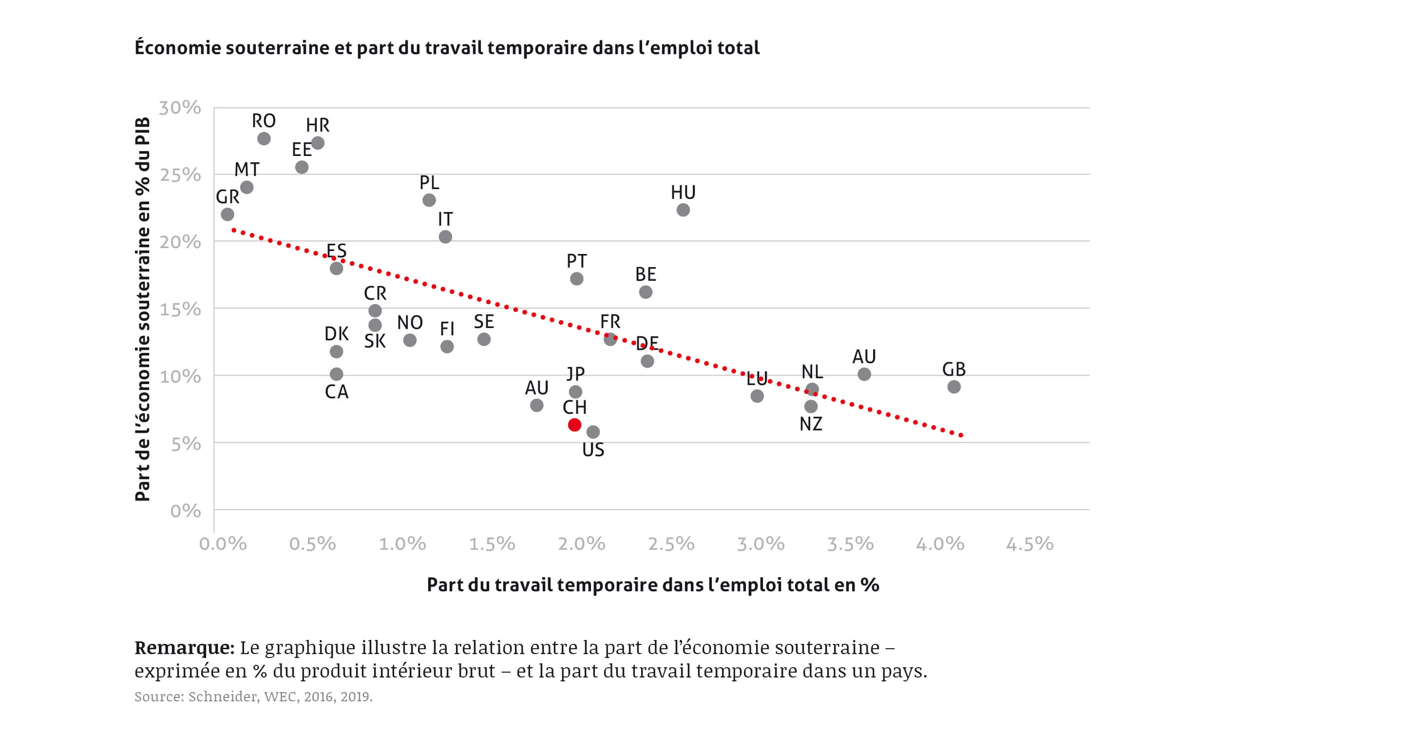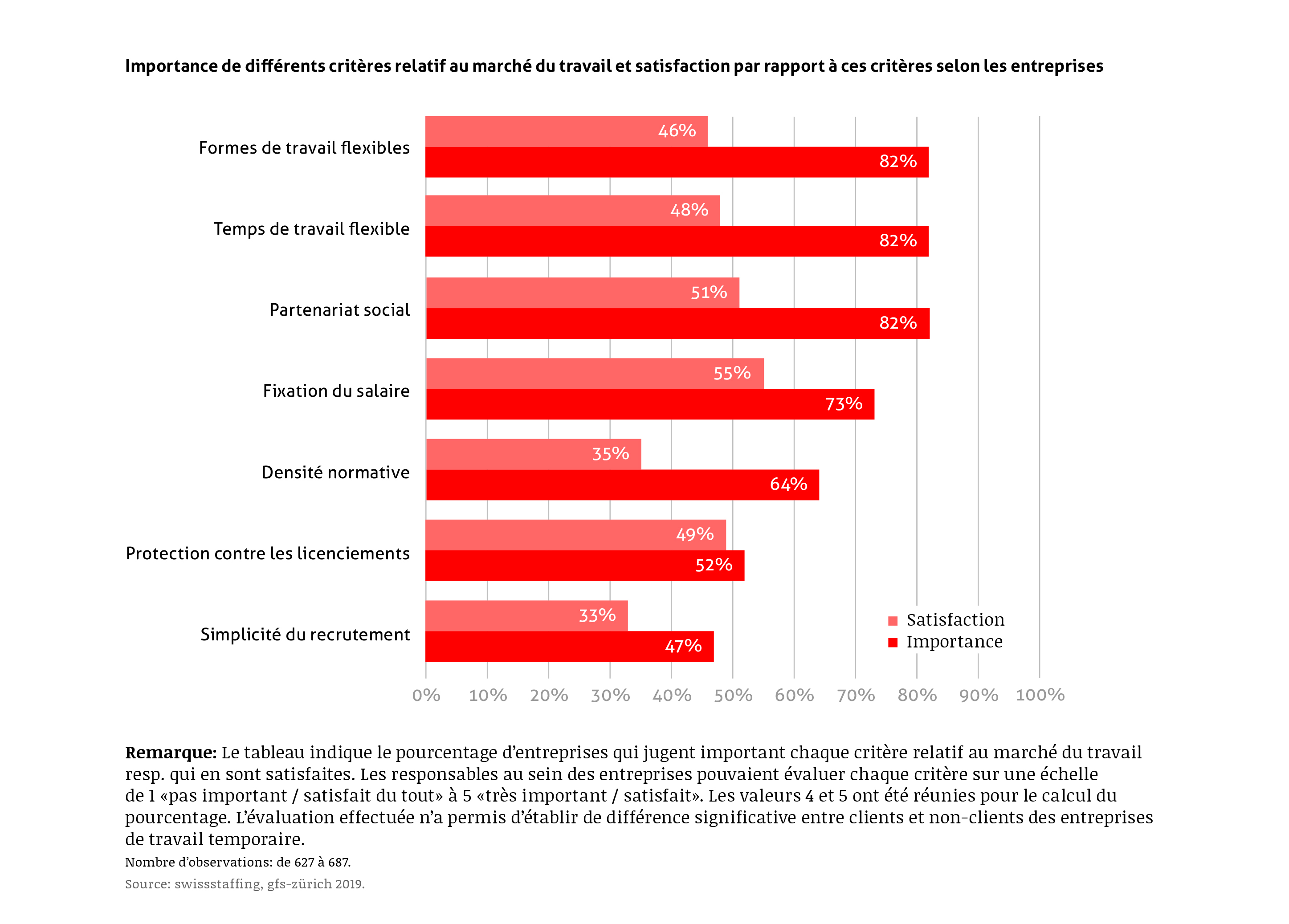 La préservation d'un marché du travail libéral est vitale aussi bien pour les employés et les demandeurs d'emploi que pour les milieux économiques et l'État. Pour les employés et les demandeurs d'emploi, la flexibilité est la garantie de rester intégré durablement sur le marché du travail. Les chiffres de swissstaffing le prouvent: les travailleurs «faibles» (auxiliaires; plus de 50 ans) bénéficient tout particulièrement de la flexibilité du travail temporaire, surtout quand ils peuvent retrouver un emploi par une entreprise de location de services après une brève période de chômage. Pour les milieux économiques, la flexibilité est un avantage économique décisif face à la concurrence internationale. Un exemple en est fourni par les travailleurs temporaires: plus le travail temporaire occupe une place importante dans une économie, plus celle-ci est compétitive dans l'indice de compétitivité mondiale du Forum Économique Mondial. L'État n'est pas le dernier à en profiter: le taux élevé d'intégration au marché du travail augmente les recettes liées aux impôts et aux assurances sociales et entrave l'économie souterraine.