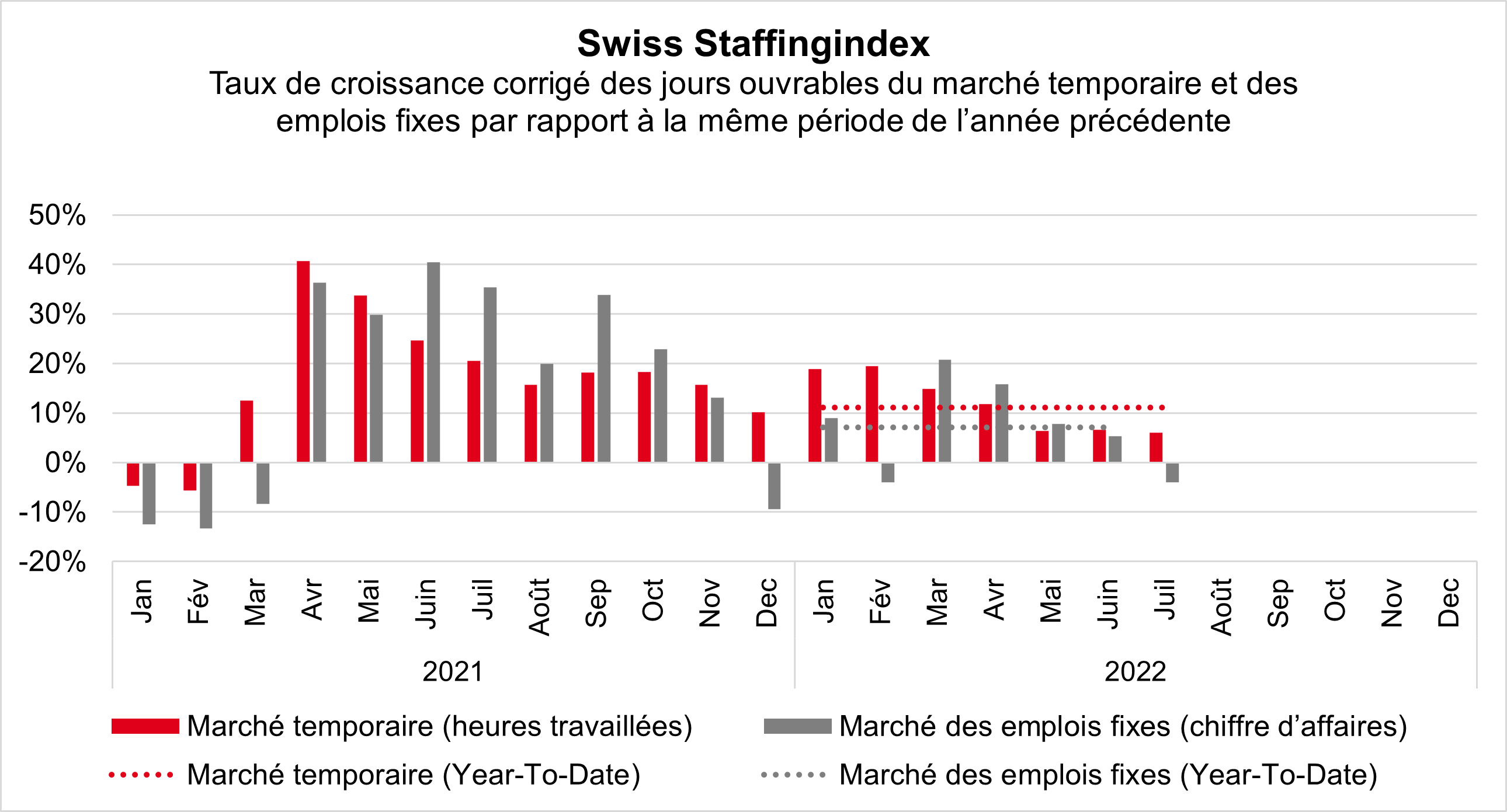 Deux évolutions apparemment paradoxales sont responsables de cette situation. Premièrement, le marché du travail suisse est asséché. Les personnes qui cherchent un emploi fixe l'ont généralement déjà trouvé. La flexibilité du travail temporaire est une clé importante pour utiliser au mieux le potentiel restant de travailleurs indigènes. Il se peut que la tendance observée cache des inquiétudes conjoncturelles. L'hiver approche, et des pénuries de gaz et d'électricité sont à craindre. Voilà une raison supplémentaire pour laquelle les entreprises locataires de services pourraient recourir davantage au travail temporaire.