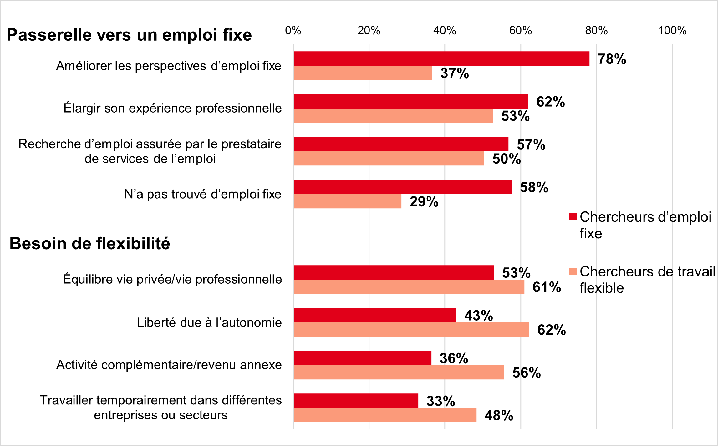 Base: travailleurs temporaires à la recherche d'un emploi fixe, 4134 personnes, travailleurs temporaires à la recherche de flexibilité, 1878 personnes.