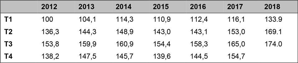 Aperçu de l'évolution du Swiss Staffingindex, référence: T1 2012