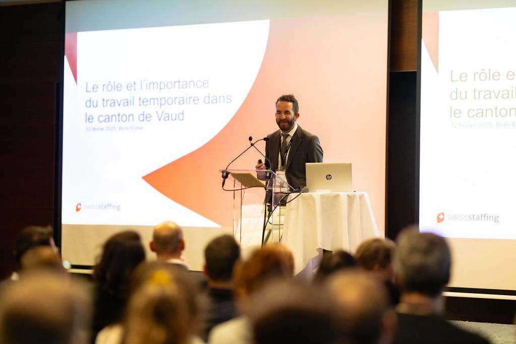 Le 12 février 2025, l'événement « Construire des ponts : Location de services et intégration » a réuni des représentants des services de l'emploi, des entreprises de la location de services, des professionnels des ressources humaines ainsi que des représentants des autorités cantonales de l'emploi et de l'intégration au Royal Savoy à Lausanne.
