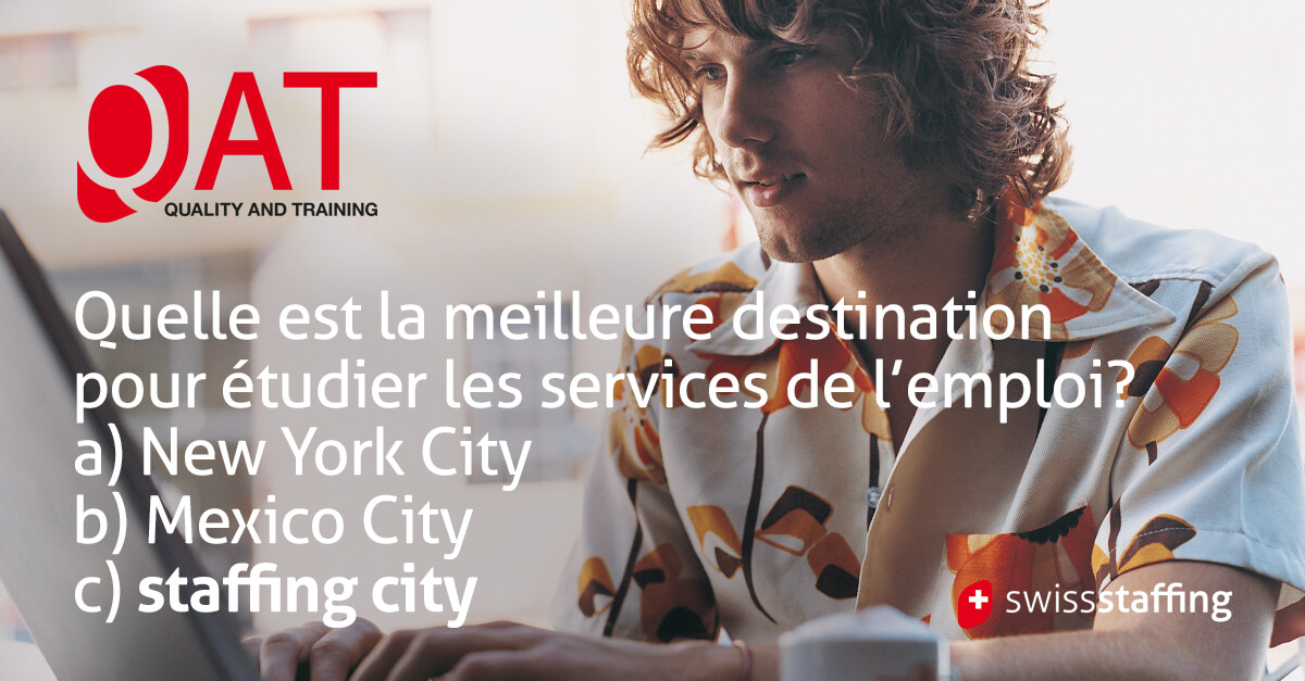 Le système de formation QAT Quality and Training répond de manière spécifique aux besoins des entreprises de location de services et de leur personnel interne. Conçue sous forme de ville virtuelle, la plateforme d'auto-apprentissage «staffing city» propose aux nouveaux collaborateurs de notre branche un enseignement proche de la pratique, efficace et homogène à partir du novembre.