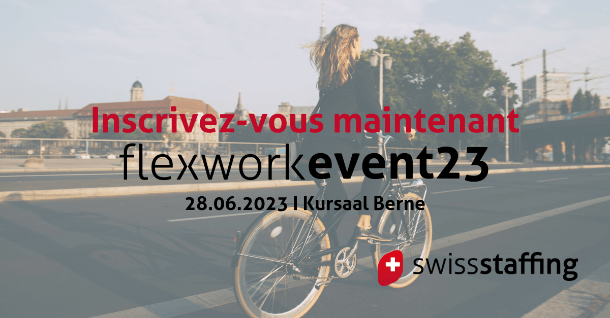 Avez-vous déjà pensé à vous inscrire à notre événement Flexwork 2023 «Pourquoi le flexwork est en plein essor»? Réservez l'une des dernières places disponibles et participez à cette manifestation qui se tiendra le 28 juin 2023 au Kursaal de Berne.