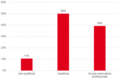 Secondo tale inchiesta, per esempio, il 39% dei collaboratori collocati ha concluso una scuola universitaria professionale, il 50% è considerato qualificato e solo l'11% non qualificato. Il fatto che quasi il 90% dei lavoratori collocati sia considerato qualificato dimostra la continua elevata domanda di specialisti e, di riflesso, la persistente carenza. La grande varietà di attività che beneficiano del collocamento di personale emerge anche a livello di salario. Sempre secondo la RIFOS, il 25% del personale non qualificato guadagna meno di 4100 franchi al mese, mentre il 25% del personale che ha concluso una scuola universitaria professionale guadagna più di 9200 franchi al mese. Se ne deduce che del collocamento diretto da parte di servizi privati non beneficiano solo i lavoratori altamente qualificati. Si tratta in realtà di un'opportunità anche per i lavoratori non qualificati e per quelli con una formazione professionale.