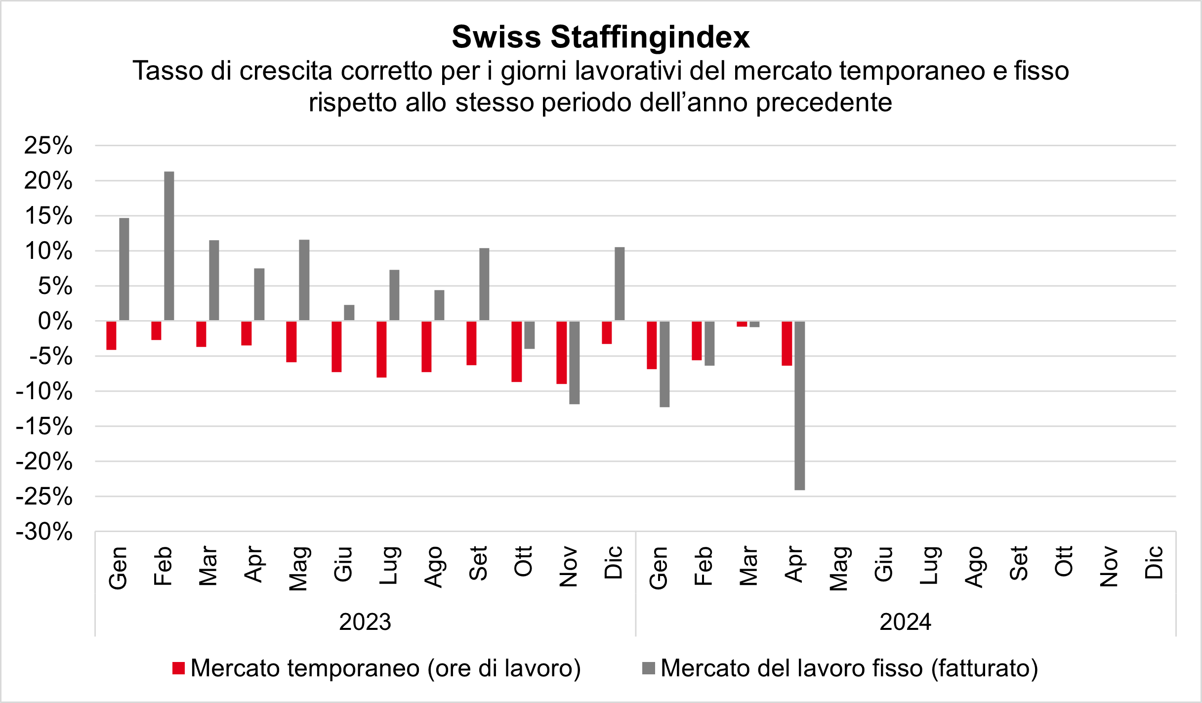 Il raffreddamento dell'economia colpisce i prestatori di personale. Il numero di ore lavorate nel prestito di personale è diminuito del 6,4 per cento rispetto allo stesso mese dell'anno precedente. Il fatturato nel segmento dei collocamenti a tempo indeterminato sta crollando. Si è registrato un calo degli affari del 24,1 per cento rispetto ai dati dell'anno precedente. Il raffreddamento della congiuntura continua a gravare sul mercato del lavoro temporaneo: se da un lato la disponibilità di candidati sta migliorando, dall'altro diventa sempre più difficile trovare posizioni aperte nelle aziende acquisitrici.