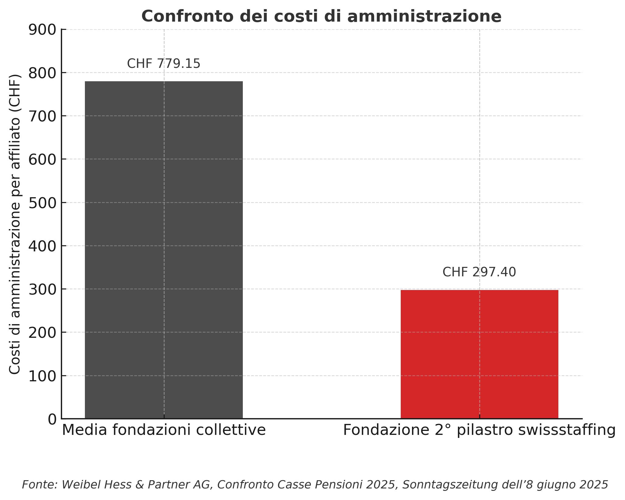 La Fondazione stabilisce parametri anche in termini di costi: con costi amministrativi di soli 297 franchi all'anno per persona assicurata, è una delle casse pensioni più efficienti della Svizzera. Il conteggio forfettario basato sulla massa salariale assicurata crea possibilità di pianificazione e trasparenza, un vero punto a favore dei prestatori di personale. Non stupisce dunque il fatto che dal 2004 il numero di assicurati si sia più che sestuplicato, aumentando così molto più rapidamente rispetto al mercato del lavoro temporaneo stesso.
