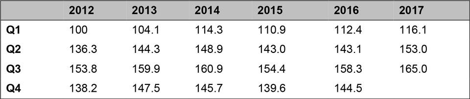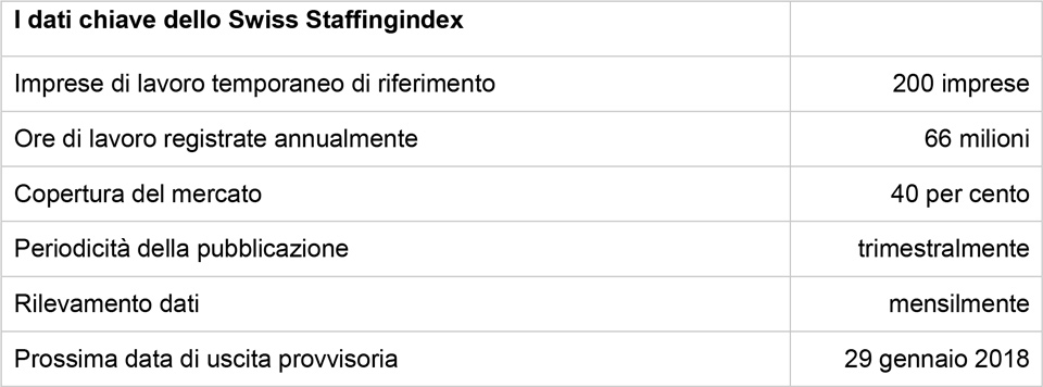 Nella tabella sottostante lo sviluppo dell'indice Swiss Staffingindex, base: Q1 2012