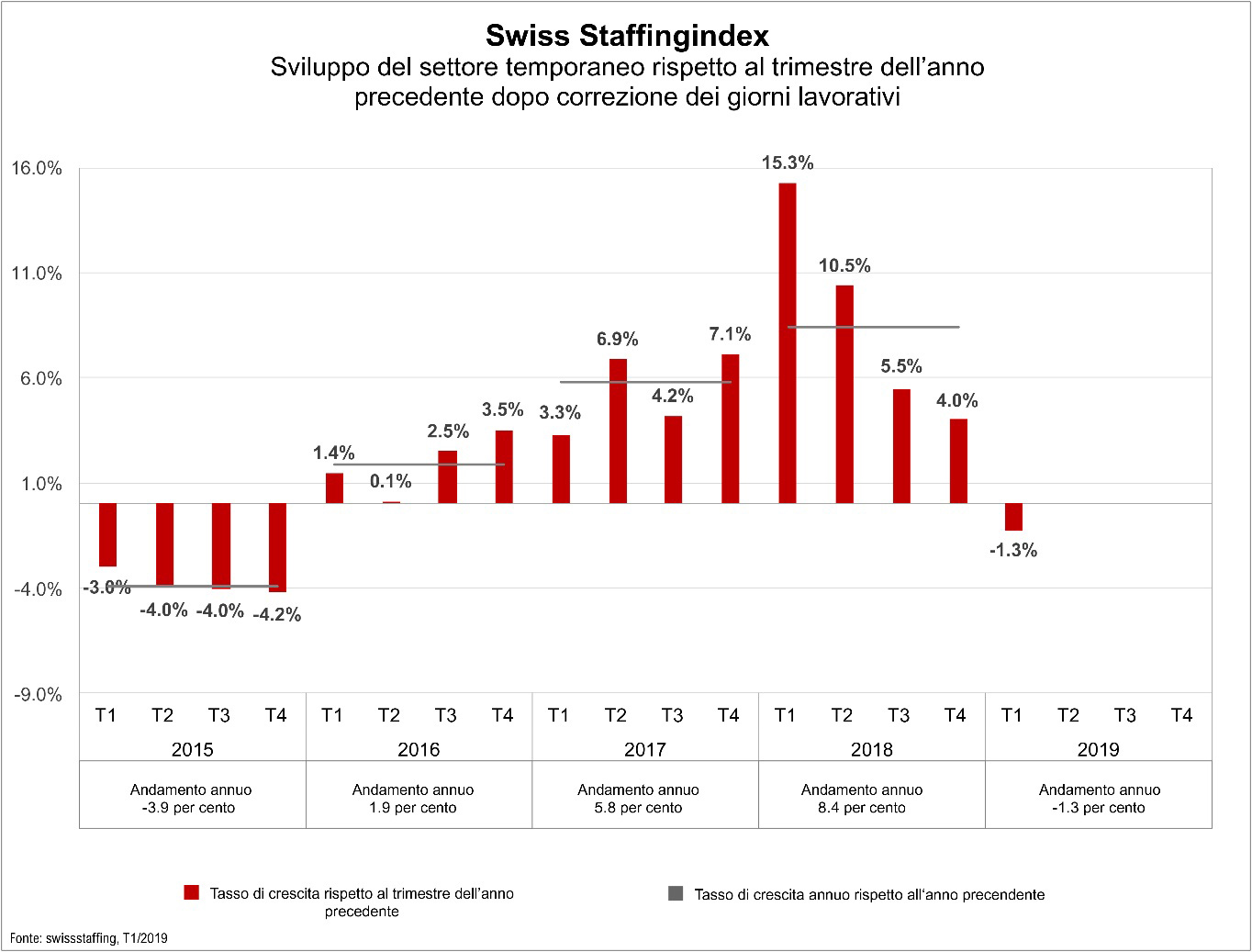 Un lavoratore temporaneo su due in cerca di un posto fisso lo ha trovato entro 24 mesi dall'inizio della fase di lavoro temporaneo. Questo è quanto emerge da un nuovo sondaggio tra i lavoratori temporanei, condotto dall'istituto gfs-zürich per conto di swissstaffing. Anche in tempi di congiuntura difficile, la flessibilità del lavoro temporaneo e il supporto di un fornitore di servizi per le risorse umane aiutano a ritrovare rapidamente la strada del ritorno alla vita lavorativa e un posto fisso. Per altre conclusioni potrete consultare il White Paper recentemente pubblicato «Lavoro temporaneo tra integrazione nel mercato del lavoro e carenza di personale specializzato» del mese di aprile 2019.